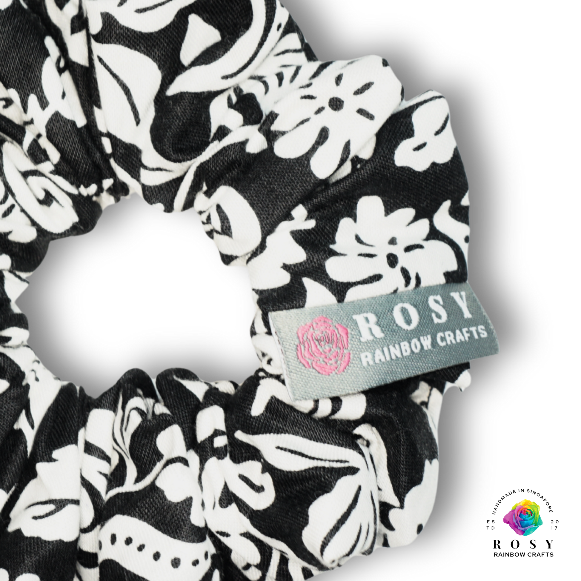 Elevate your hair game with this charming vintage floral cotton scrunchie featuring a timeless black and white design that complements any look. Crafted from 100% premium USA designer cotton, it's gentle on all hair types—whether fine or thick—without snagging or causing breakage.
